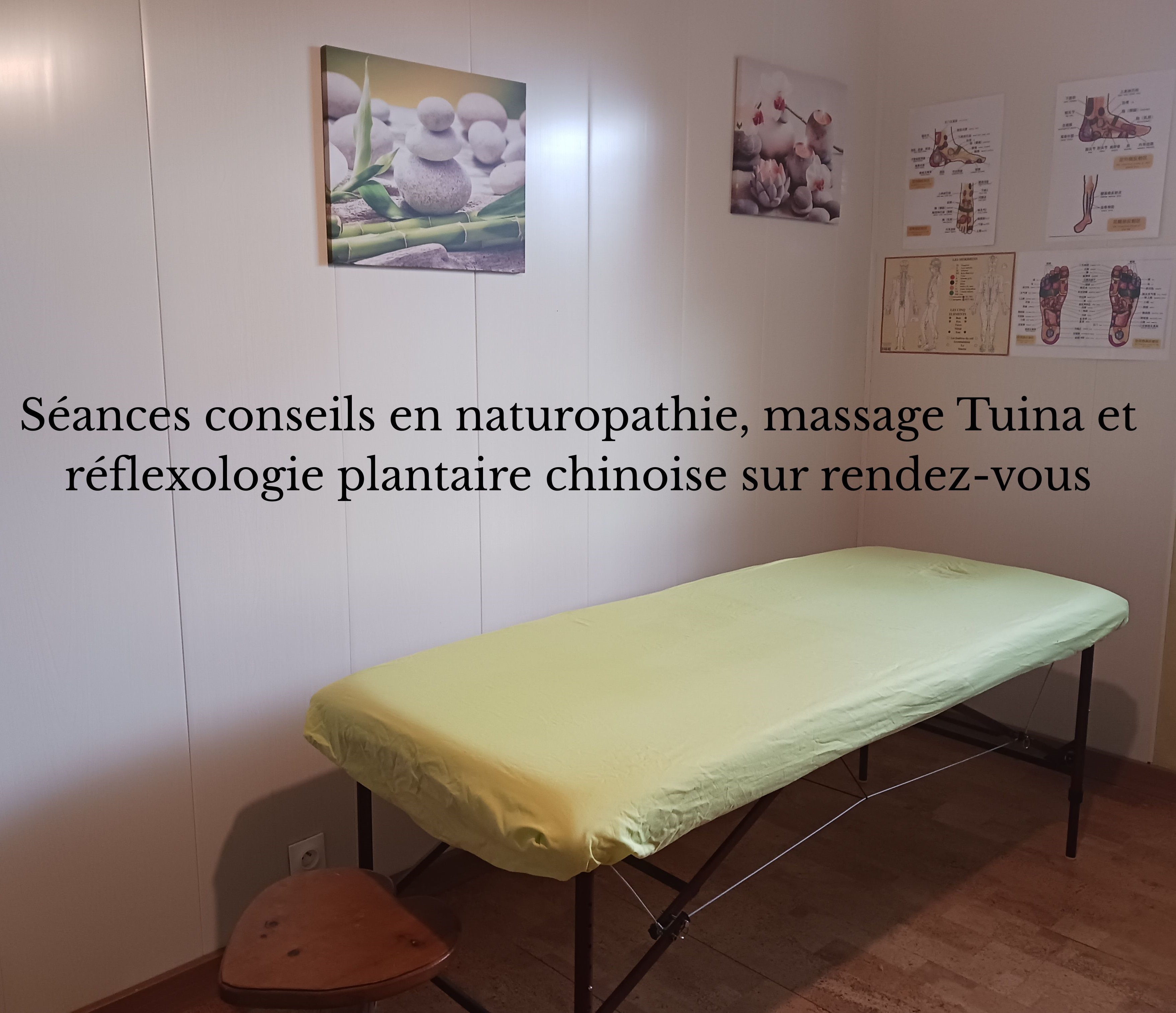 Séances conseils en naturopathie, massage Tuina et réflexologie plantaire chinoise.