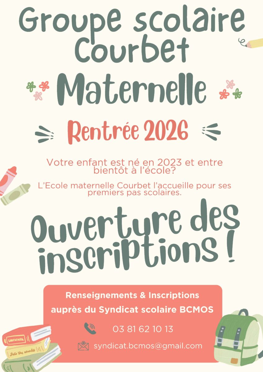 Votre enfant est né en 2023 et entre bientôt à l’école ? L’école maternelle Courbet l’accueille pour ses premiers pas scolaires. Les inscriptions sont ouvertes dès maintenant pour la rentrée 2026.